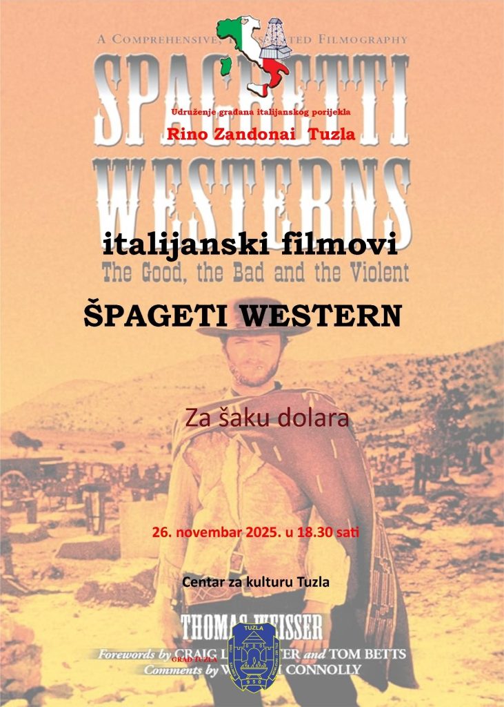 U okviru filmske večeri pod nazivom „Filmovi – Tuzlaci i kauboji“, u Centru za kulturu Tuzla dana 26.11.2025. godine, prikazan je film iz serijala „Špageti western“ pod nazivom „Za šaku dolara“. Film je prikazan nakon premijere dokumentarnog filma „Zjenica u šarenici“, a predstavljen je od strane Zorana Pavljaševića, saradnika Udruženja Italijana na tematici filma i […]