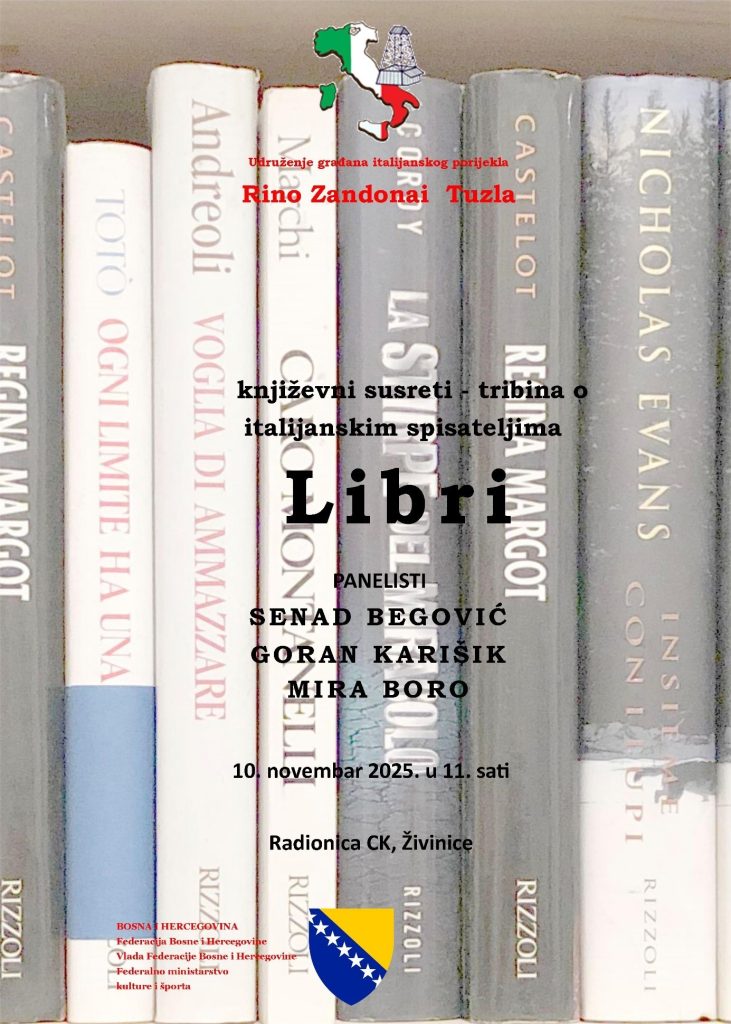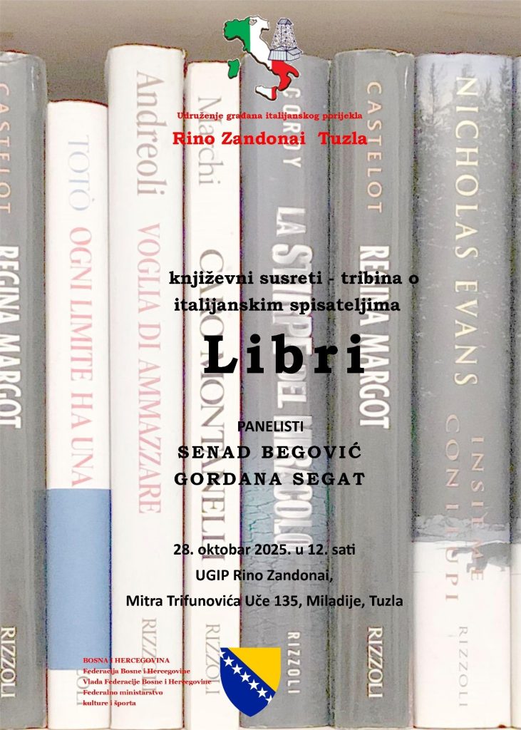 Književna tribina održana je u prostorijama UGIP „Rino Zandonai“ Tuzla dana 28.10.2025. od 12 sati. To je druga književna tribina u programu „Živa riječ i color film“ i ujedno prva tribina tj. književni susret u programu „Kultura na šarenom dlanu“. Prezentatori su bili Senad Begović (govorio o djelima Elena Ferrante i Dante Aligieria), Gordana Segat […]