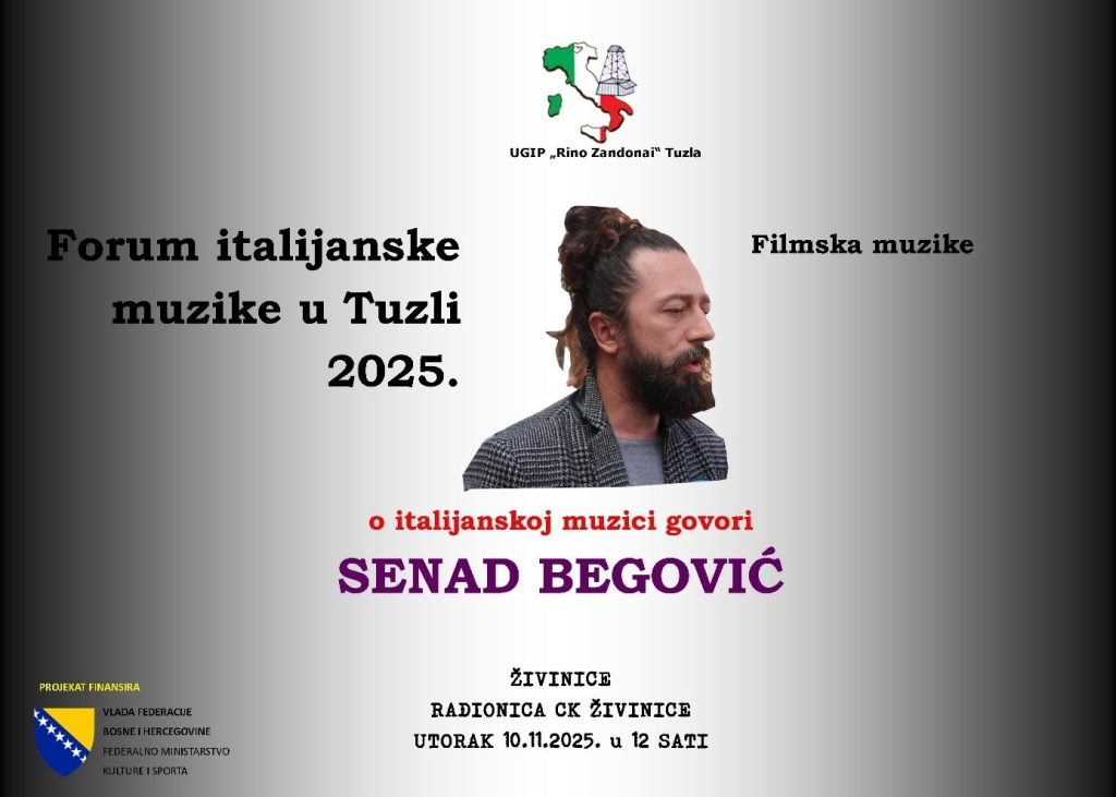 U Edukativnom centru Crvenog križa Živinice, u saradnji sa NVO Zlatna dob Živinice, održan je treći Forum italijanske muzike. Gost foruma Senad Begović, stručni radnik Centra za kulturu Tuzla, predstavio je filmsku muziku koja je korištena u italijanskoj kinematografiji. Predstavljena je filmska muzika žanra popularne muzike kompozitora Ennio Morricone koji je komponovao muziku za klasike […]