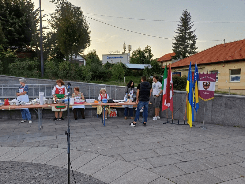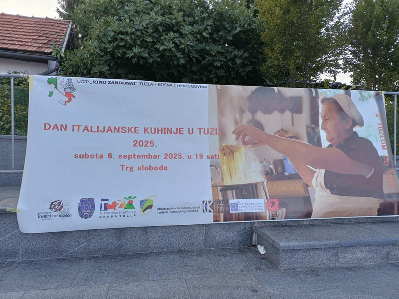 Manifestacija „Dan italijanske kuhinje u Tuzli“ održana je 6.9.2025. po lijepom vremenu od 19 sati na Trgu slobode Tuzla. Manifestacija je održana u okviru globalne manifestacije „Ljeto u Tuzli 2025“, a uz učešće 15 članica UGIP „Rino Zandonai“ Tuzla. Udruženje održava manifestaciju svake godine prve subote u septembru, tako da je u 2025. održana 16. manifestacija. Članice su pripremile više od 25 različitih gastro užitaka – tradicionalnih italijanskih đakonija. Svim gostima, kao i prethodnih godina, ponuđeno osvježenje i kafa. Ambijent manifestacije je bio izvanredan, mnogo gostiju, pitanja šta se kako priprema, pitanja „a koliko se plaća?“ i slično. Bilo je istinski zadovoljstvo Gradu Tuzli ponuditi šta je Udruženje pripremilo od italijanske gastro ponude. Svojim prisustvom počastili su nas ambasadorica Italije u BiH Sarah Eti Castellani, predstavnica Grada Tuzla Asja Redžić, Ministar za kulturu, sport i mlade Tuzlanskog kantona Damir Gazdić, veliki broj građana i turista Tuzle, a bez članova Udruženja ugođaj ne bi bio potpun. Nije bilo incidenata, a sva pripremljena hrana je podijeljena. Prema procjeni podijeljeno je više o 650 porcija slanih i slatkih jela – od specijaliteta do standardne kuhinje.